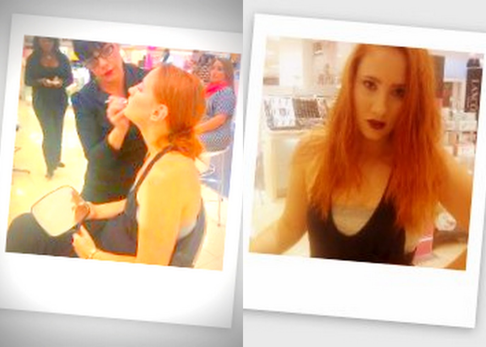 The Makeup artist asked me what kind of make up I would like. First I told her I would like to know how to do a smokey eyes but than I saw gorgeous dark plum lip gloss and I decided I would like to try that. Something different something bold! And I love the make up you can see on the Fall runway shows with dark burgundy lip.