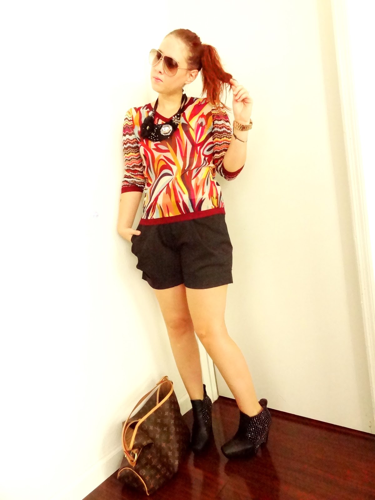 Sweater and shorts BCBG, shoes,necklace and bag Forever 21, sunglasses Tom Ford, watch Michael Kors