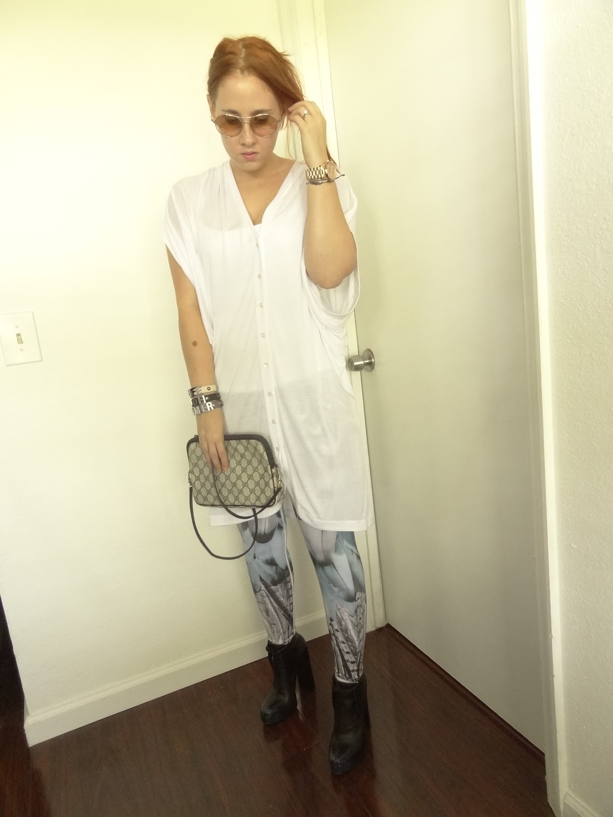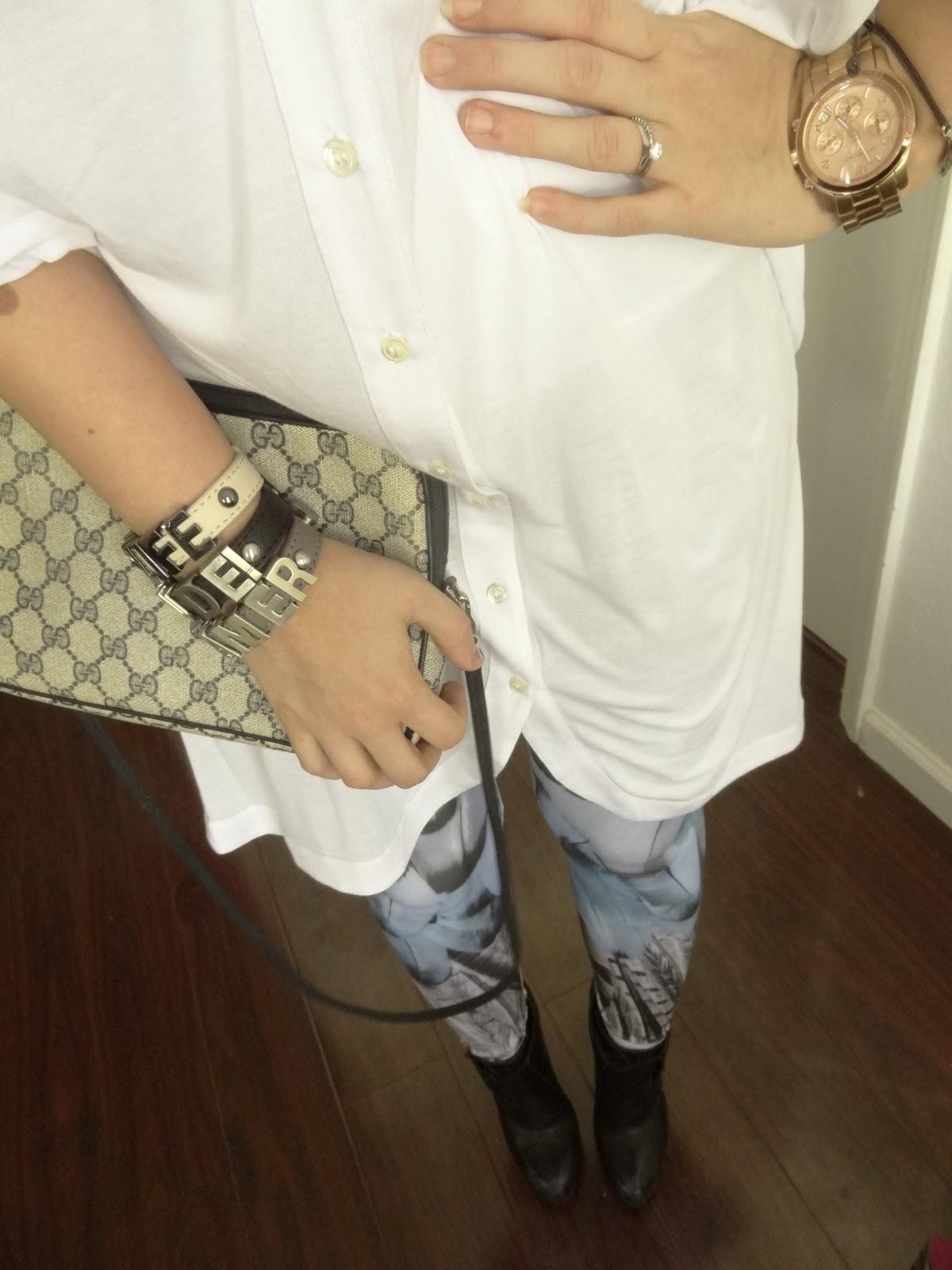T-shirt / dress and bracelets BCBG, Boots Alexander Wang, Bag Gucci, Leggings from my closet