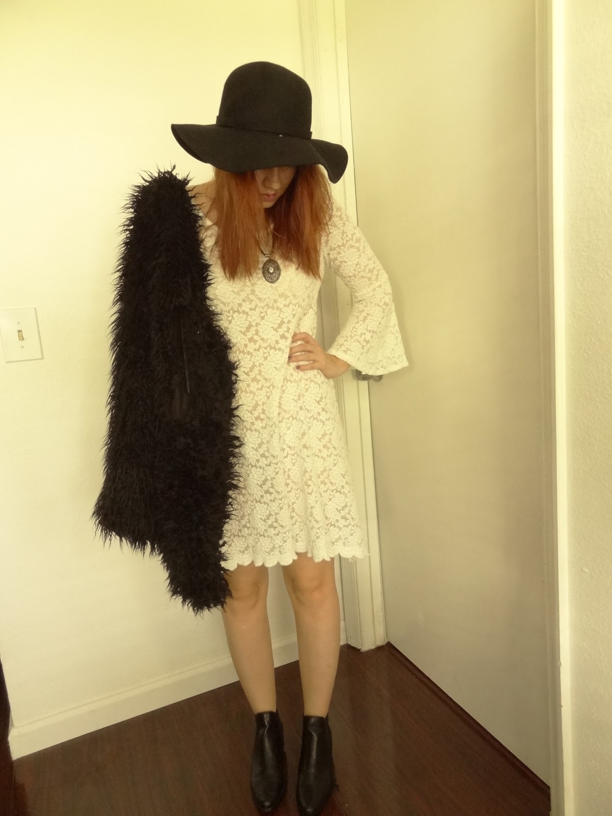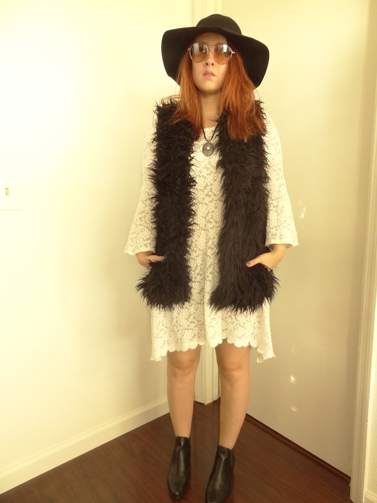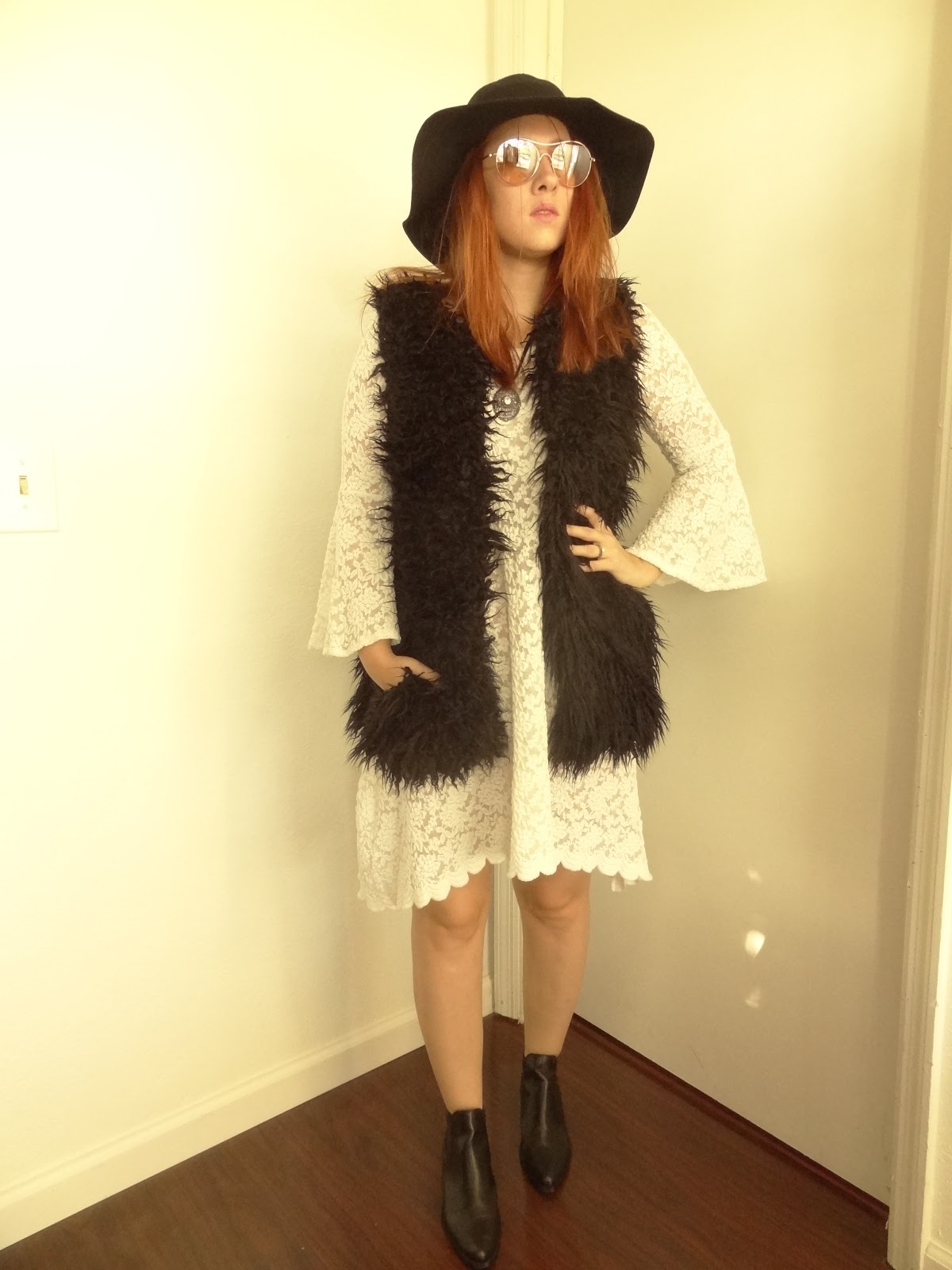 Lace dress from some store in LA, vest and boots Forever 21, hat Urban Outfitters